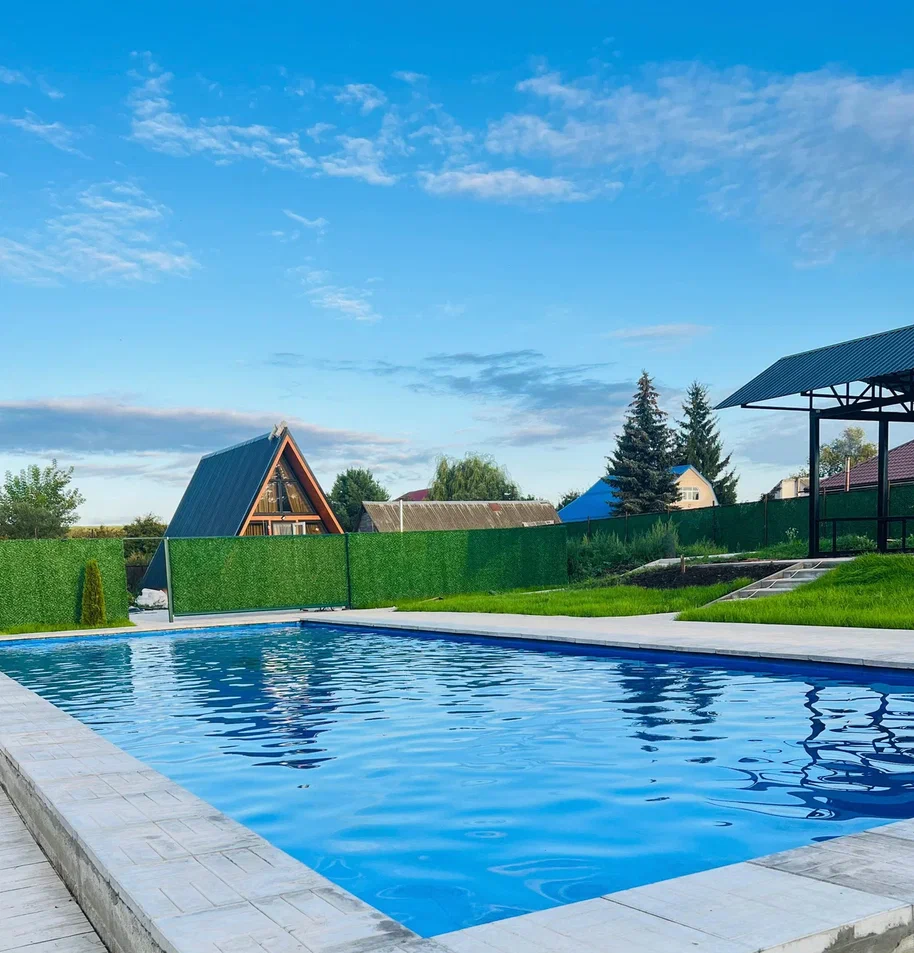 Да, на территории комплекса находится бассейн, который доступен для использования гостями. Он открыт в светлое время суток. Для вечернего купания мы рекомендуем воспользоваться баней — это отличная альтернатива для релаксации после насыщенного дня.